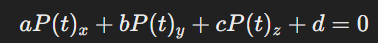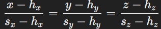 ⟨dx,dy,dz⟩는 포인팅 방향 벡터이고, 는 직선 방정식에서의 매개변수. 는 포인팅 레이와 디스플레이 평면이 만나는 교차점 위치.