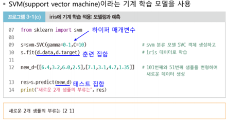 10행 : 객체 s의 fit 함수는 훈련 집합 가지고 학습수행