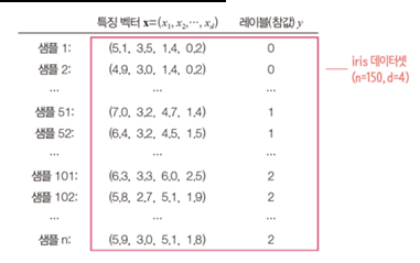 훈련 집합 : 기계학습 모델 학습하는데 쓰는 데이터, 특징 벡터와 레이블 정보 모두 제공