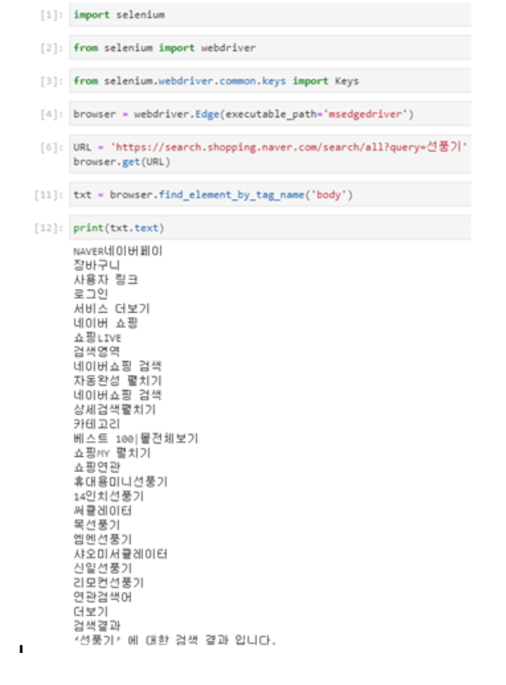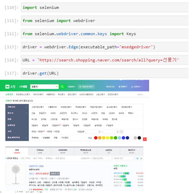 3. 동적 크롤링 (네이버 선풍기 검색- 특정 선풍기 출력도 가능한데,,, 거기까진 안했다..)