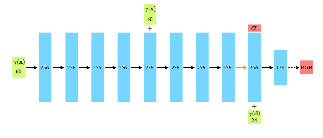 - gamma: 광선 방향을 인코딩한 벡터 (입력 차원: 24).
