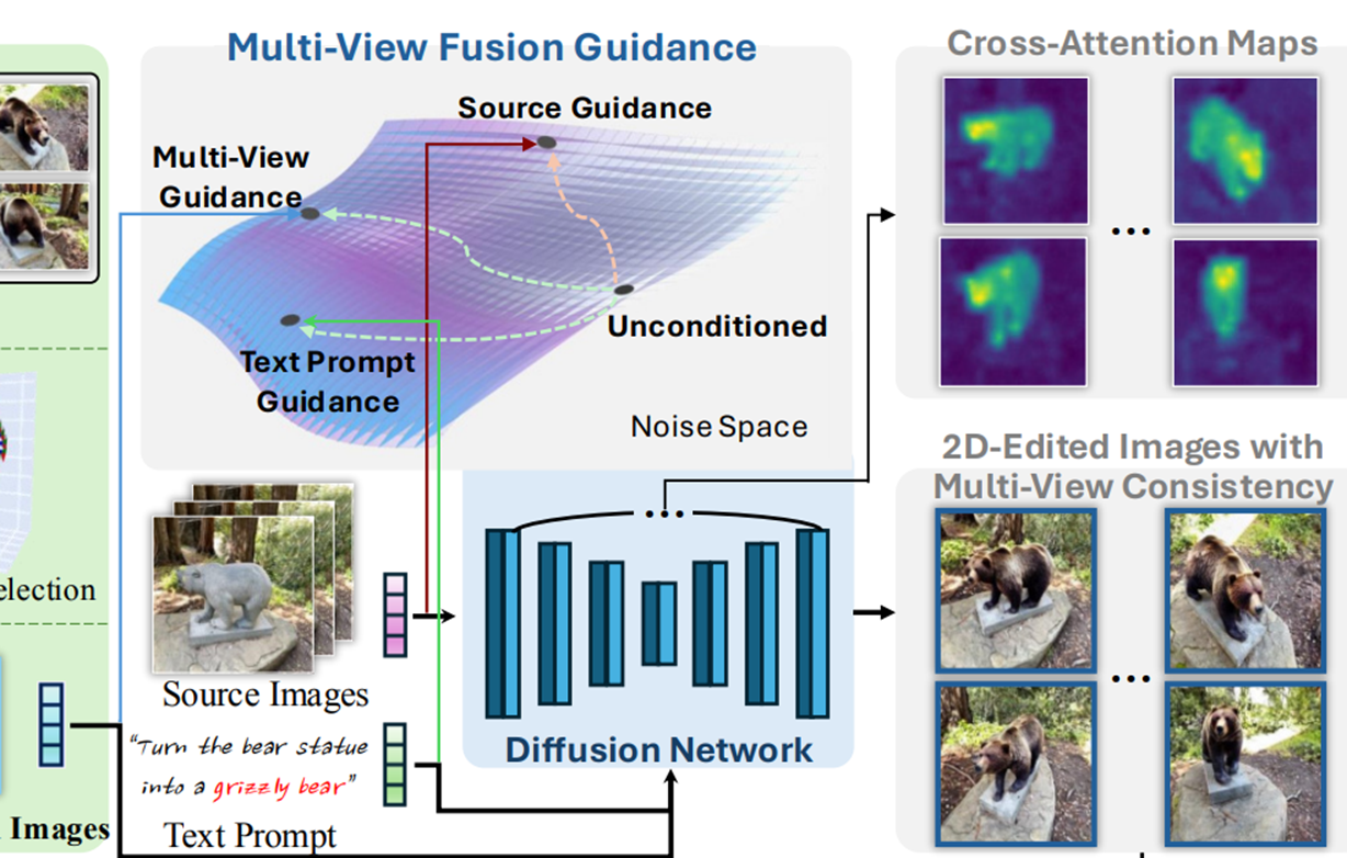 multi-view 이미지를 같이 가이드로 줌으로서 editing이 “텍스트에 맞으면서도 multi-view consistency ”을 유지.