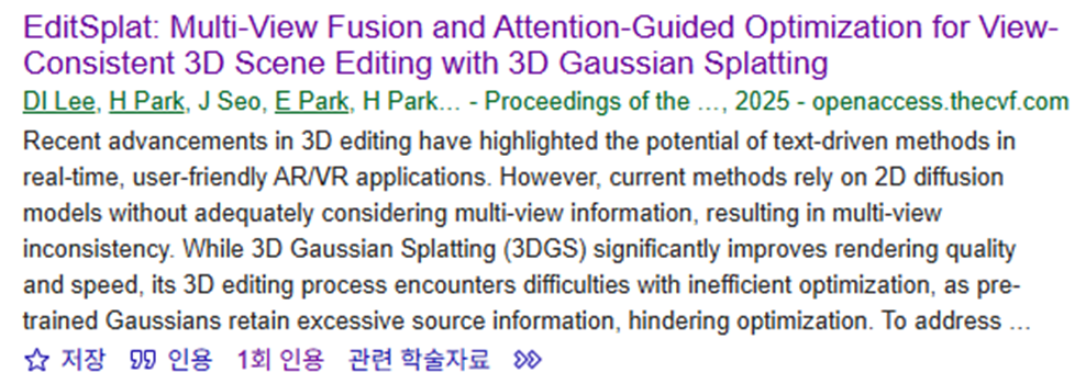 CVPR 2025에 발표된 내용이네. 한국인이라서 눈에 띄었고 개인적으로 Diffusion + 3DGS + 3D Editing에 관심이 생겨서 나름 안질리고 읽음. 근데 Diffusion에 대한 기본 지식 없음 이슈 + 걍 뭐지,,? 싶었음.