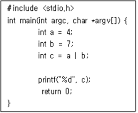 or 연산자는 둘 중 하나만 1이어도 1로 나타내므로, 00000111 = 7