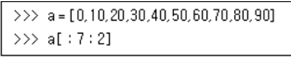 a[:7:2]이면, a[0]~a[6]까지의 값 [0,10,20,30,40,50,60]이고,