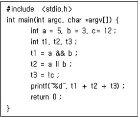 # C언어 연산자에서는 0이 아닌 모든값은 1(TRUE)로 본다. 그래서 a=1 b=1 c=1 로 바꿔서 대입해도 같은결과가 나온다